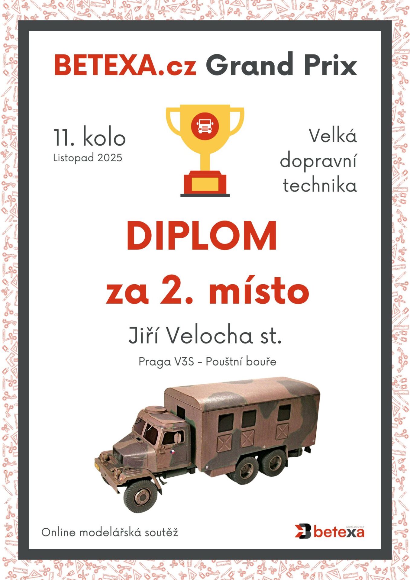 Na druhém místě se umístila Praga V3S – Pouštní bouře, jejímž autorem je Jiří Velocha st.