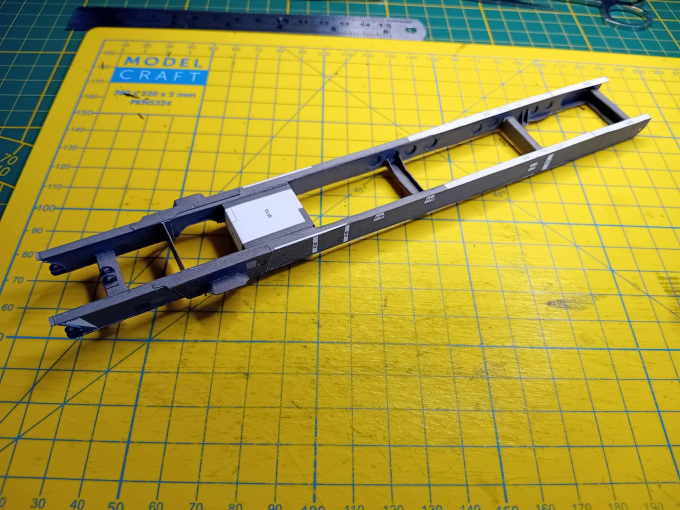 Začal som rámom, všetko pekne sedelo a presnosť  trvala až do konca, čo sa nedá povedať  o mne 🙂. Po ráme následovali nápravy, centrálna rúra, zostupná prevodovka. Keď  som to mal všetko pripravené zlepil som to dohromady.