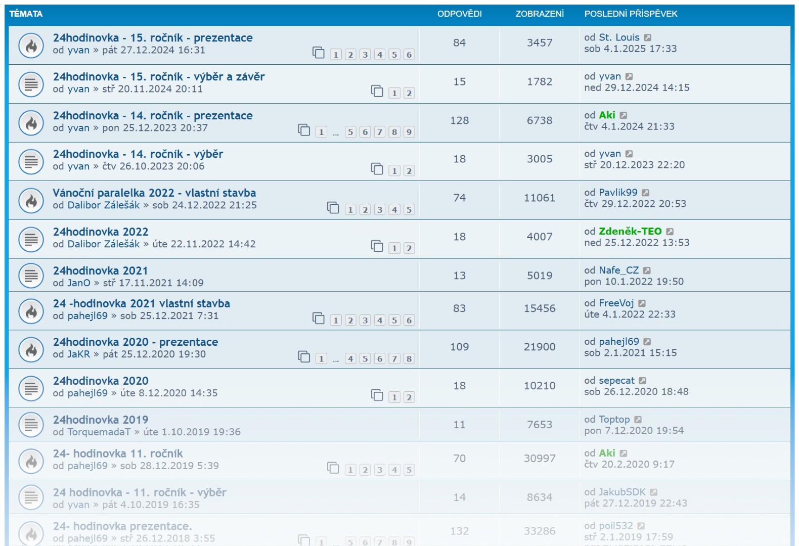 Již si přesně nepamatuji, kdy se udál první ročník, svou první účast jsem však odstartoval roku 2009 stavbou Zvonice u kostela sv. Petra na Poříčí, a věřte mi, že bude lepší, když tu vám zde neodprezentuji (každý nějak začínal :)). Roku 2022 pak proběhl ročník neoficiální, kdy hlavním tématem byla Štáflova Chalupa z Havlíčkova Brodu z mé produkce.