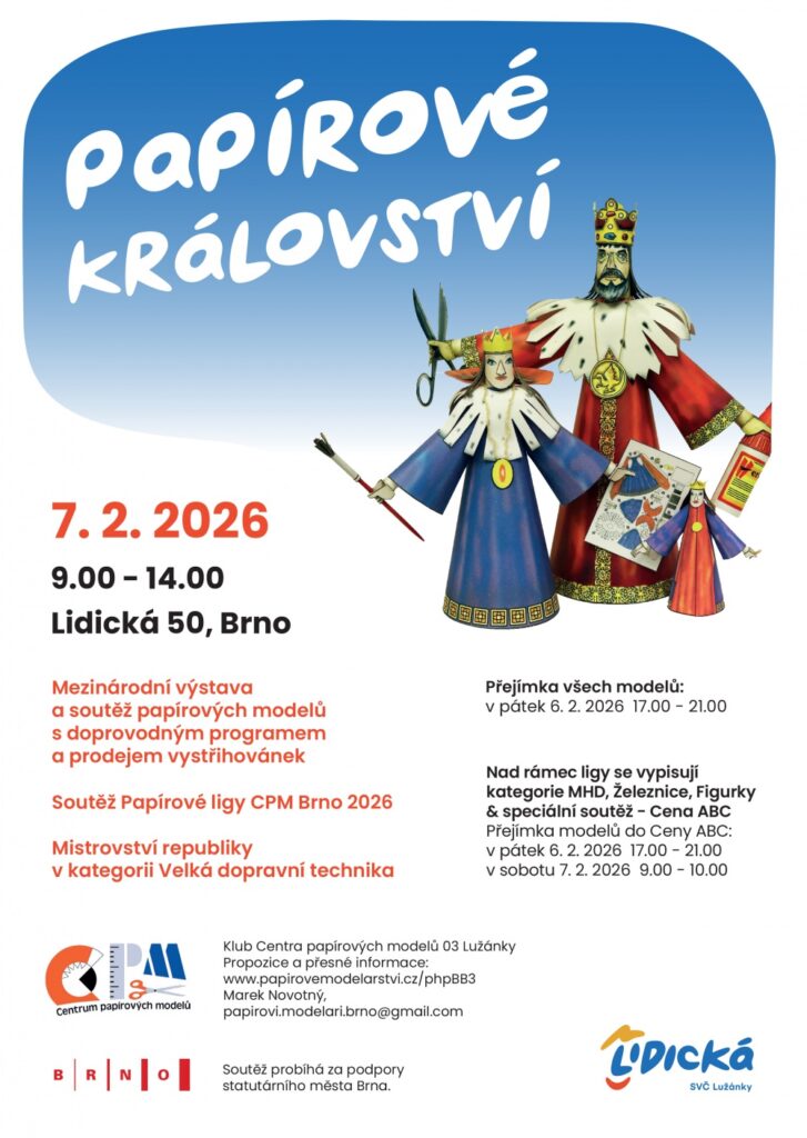 9:00 – 14:00: možnost zakoupení českých i zahraničních papírových modelů a modelářských doplňků, doprovodný program pro děti.