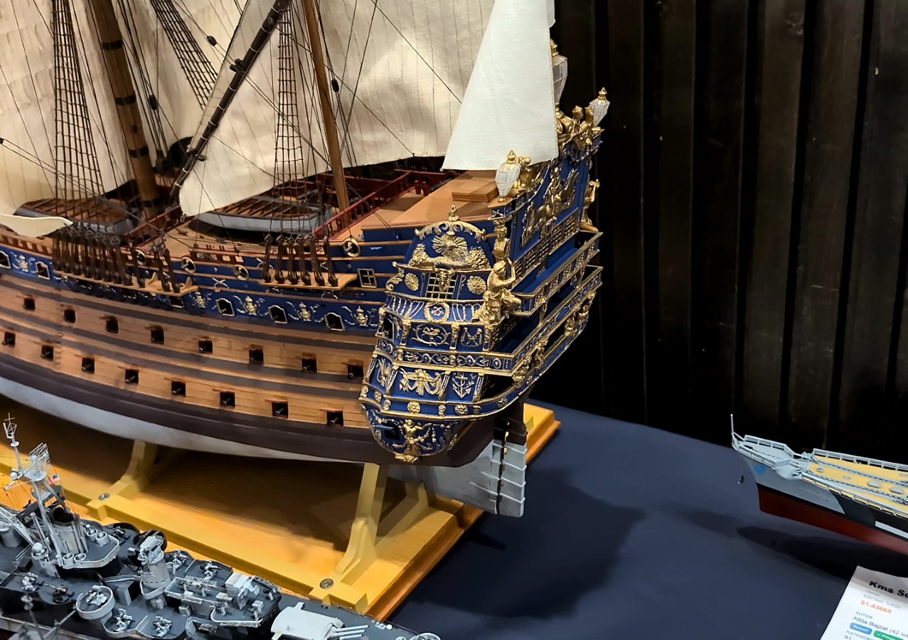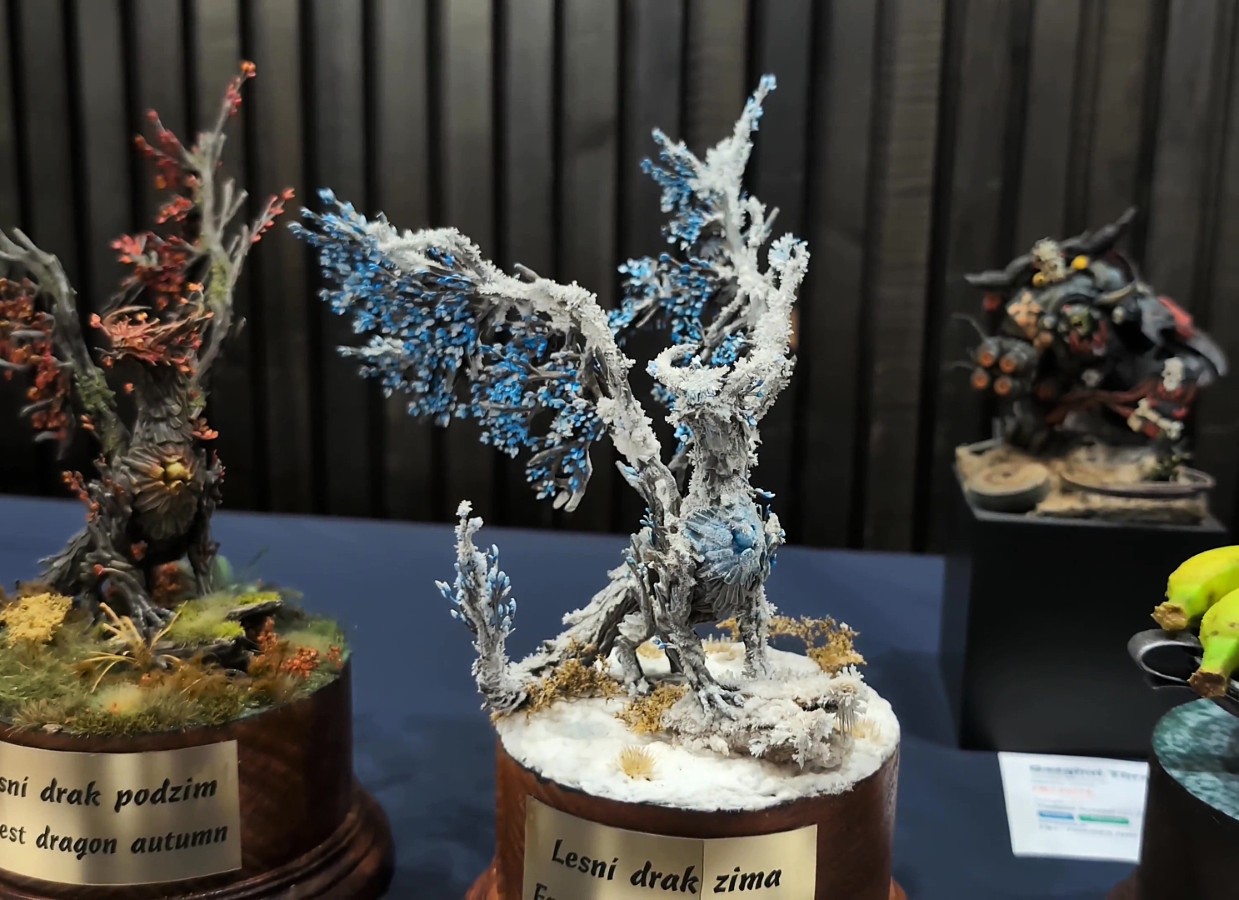 Naproti pódia byly vystaveny lodě a figurky, kterým rozhodně dominovala královská plachetnice (předpokládám, že se jedná o Le Soleil Royal), u figurek mne pak okouzlili lesní draci, stylizovaní do ročních období.