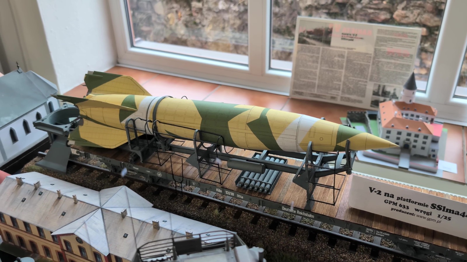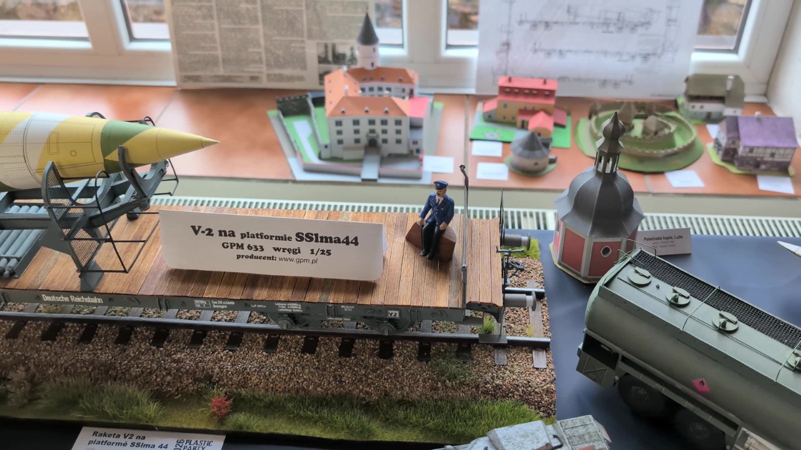 Do kontrastu drobným kapličkám zde byla vystavena Raketa V2 na platformě SSlma44 z vydavatelství GPM, a já tak měl konečně (z důvodu mé neúčasti na dříve zmíněné brněnské výstavě) možnost si tento model kolegy Ládi prohlédnout.