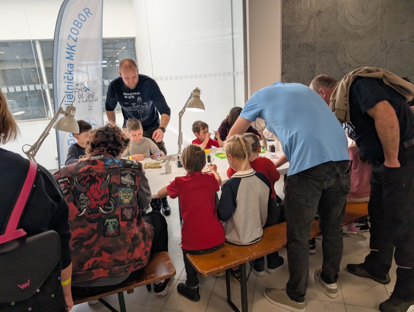 Malí i velcí zájemci si mohli postavit pod odborným dohledem například malý plastikový i papírový model, vyzkoušet techniky vybarvování figurek nebo si něco postavit z kostek stavebnic COBI.