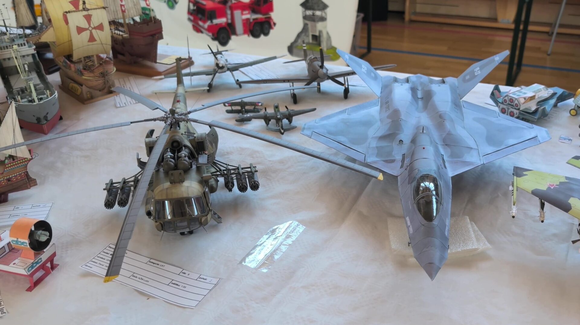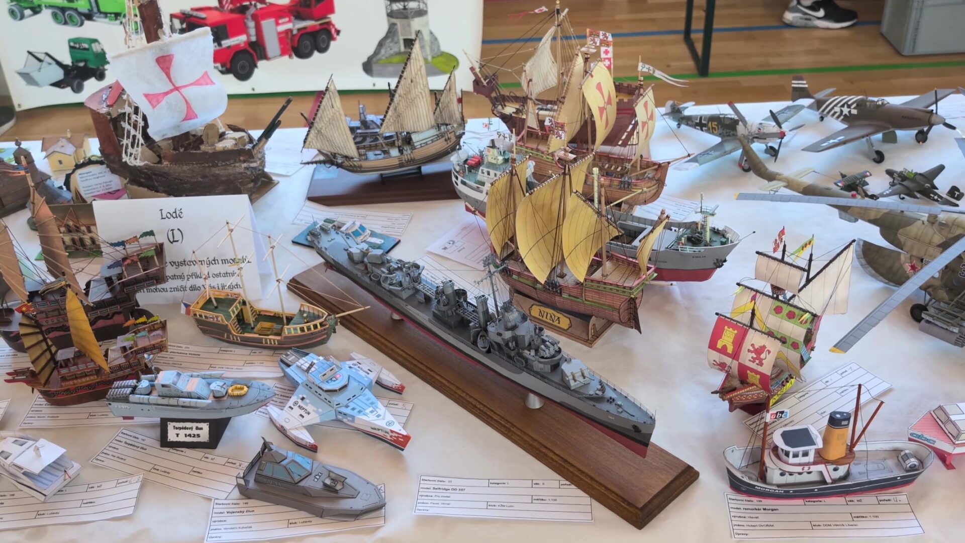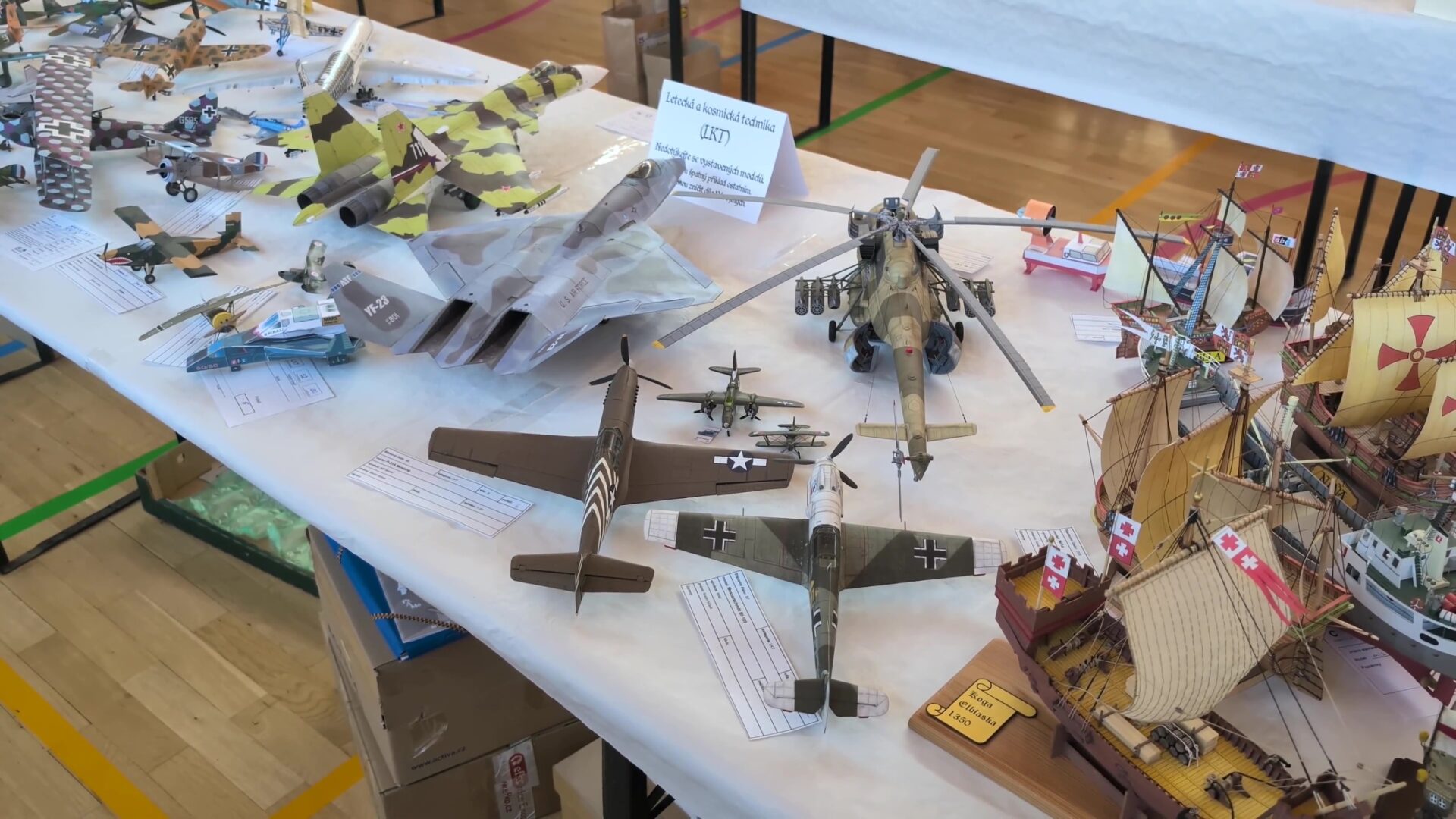 Na 300 soutěžních modelů v pátek přinesli modeláři z celé republiky i zahraničí. Spolu s dalšími výstavními modely se množstvím ani nevešly na stoly a pořadatelé se nechali slyšet, že bylo potřeba ještě v pátek večer přidat řadu stolů.