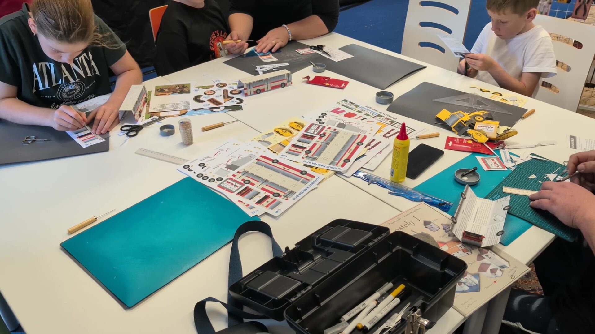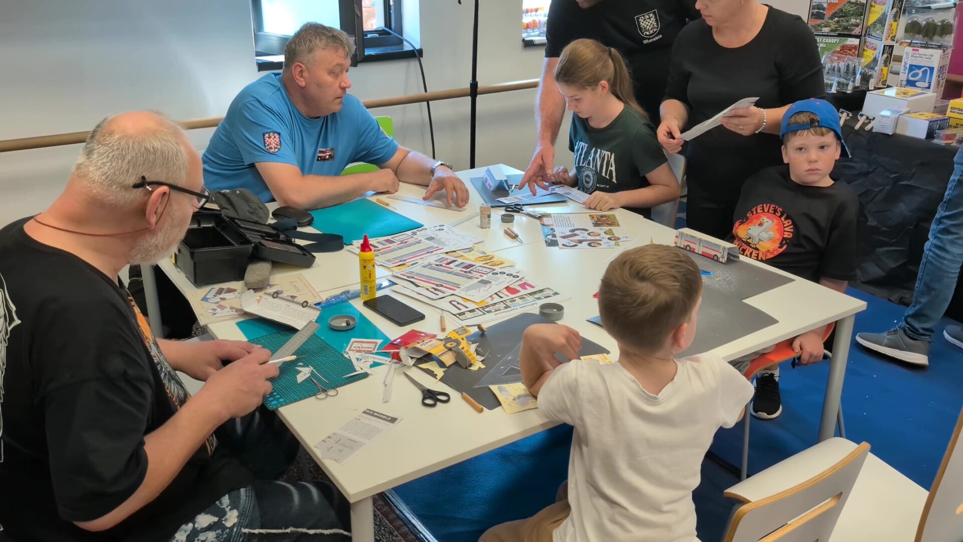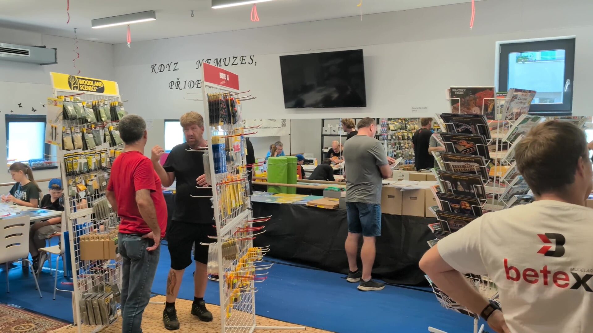 Vedlejší prostor sdílel se stánkem Betexy i koutek pro začínající a nejmenší modeláře, kde si každý mohl vyzkoušet stavbu papírové vystřihovánky pod dohledem zkušených modelářů.