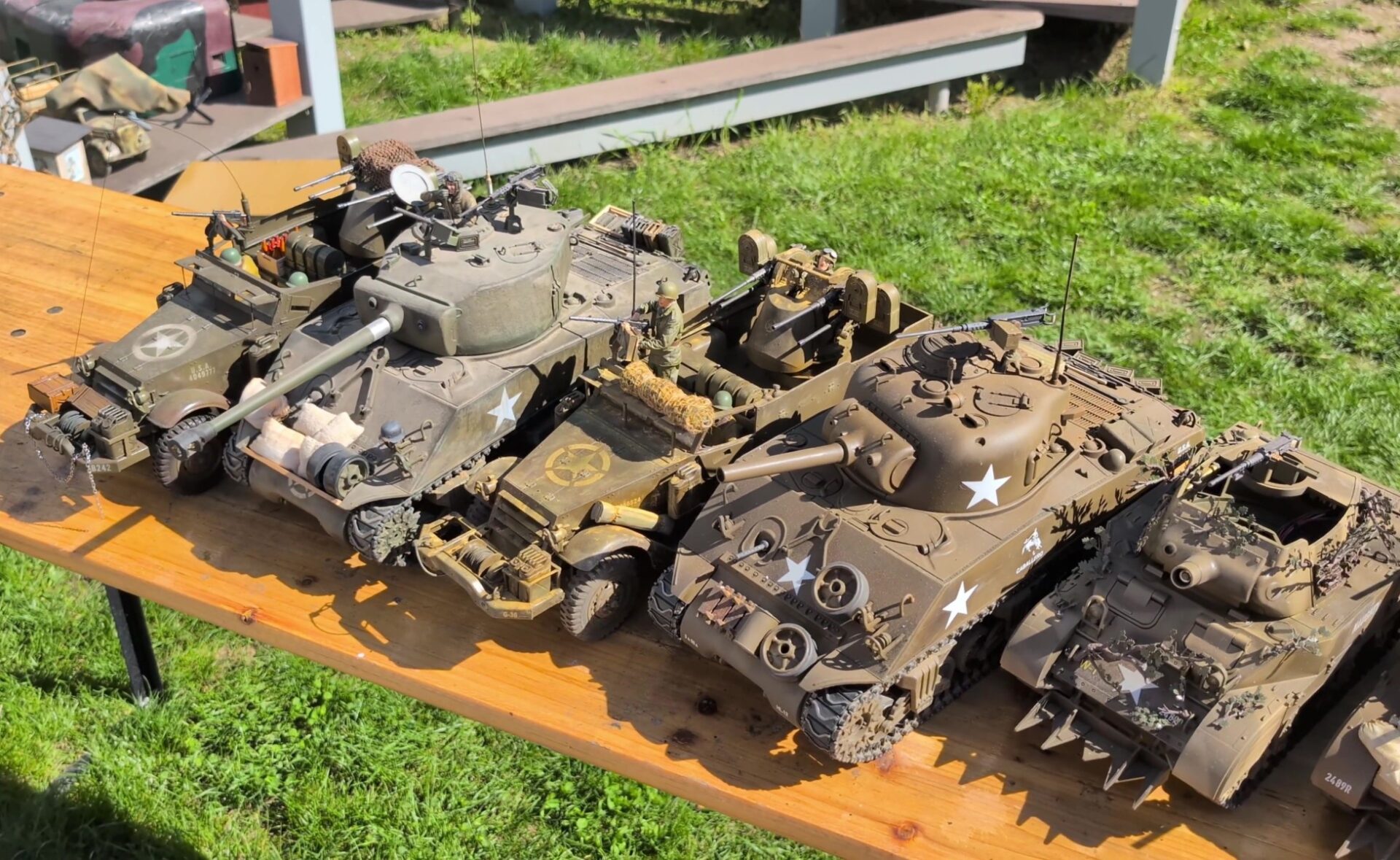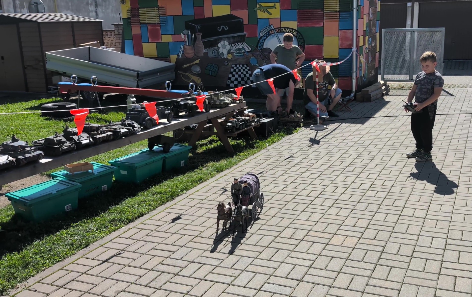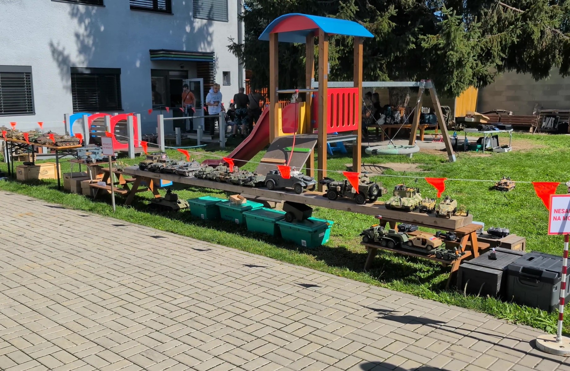 Venku na dvoře haly se prezentoval klub RC modelářů z mujtank.cz. Modely jste si mohli prohlédnout nehybné na stolech, tak i v pohybu okolo haly.