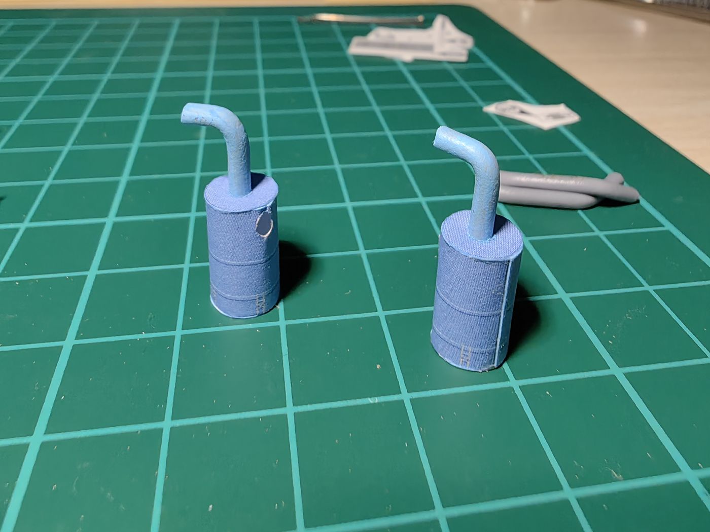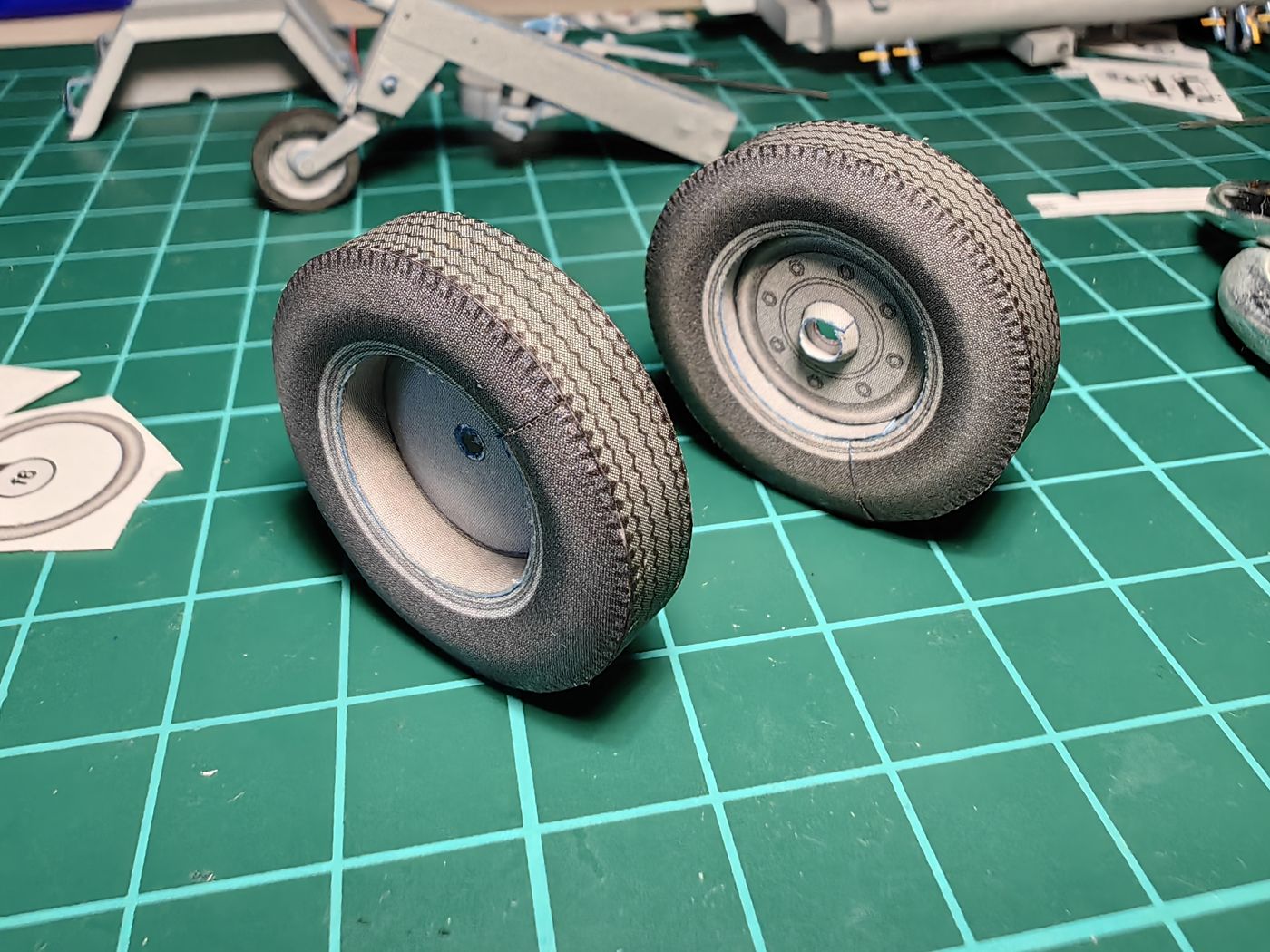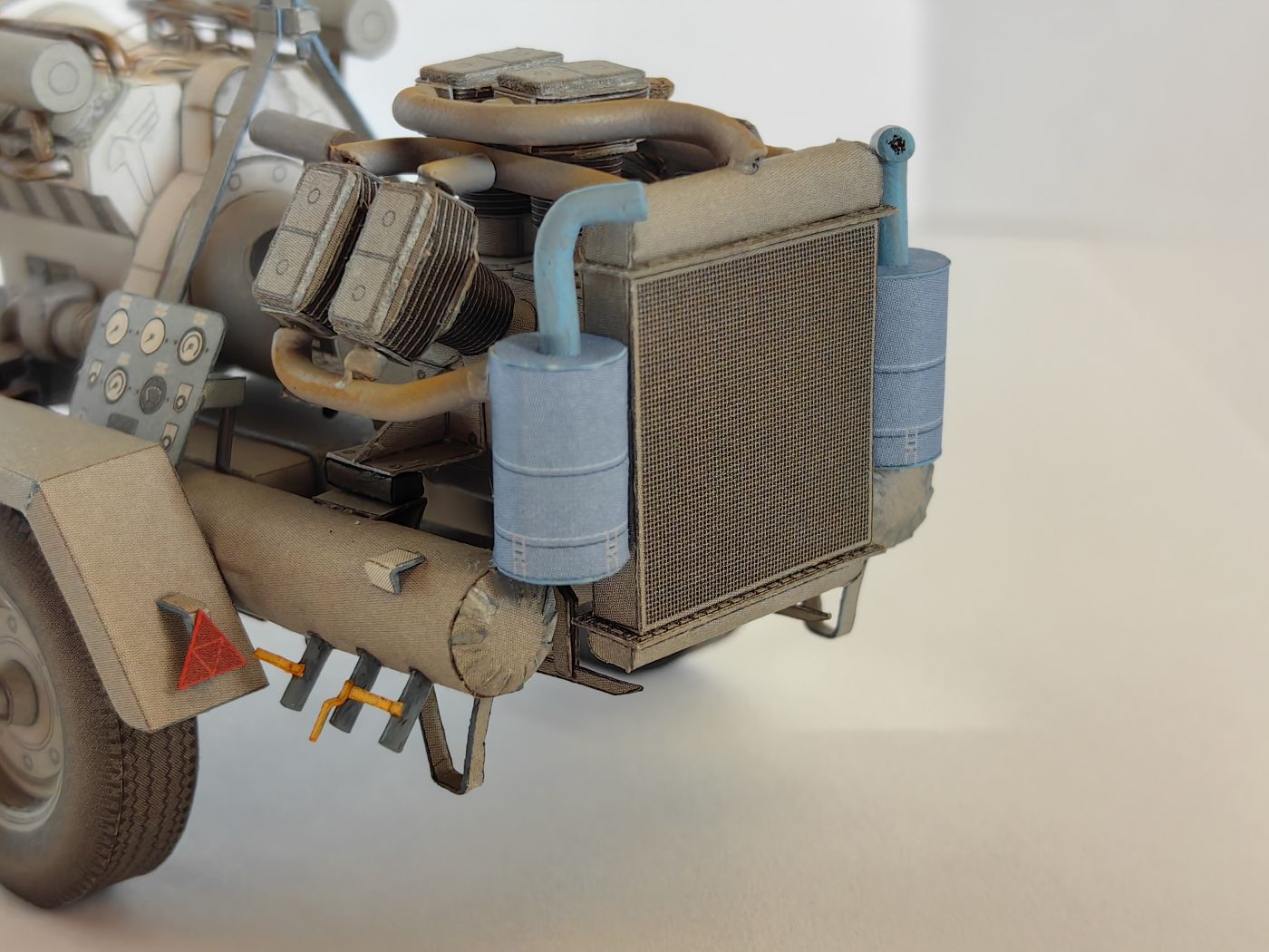 Podvozok je pekne spracovaný, napriek tomu som pridal brzdové hadice a tiahla. Pred lepením blatníkov je možnosť vybrať si blatníky buď oblé alebo hranaté. Zvolil som hranaté, pretože sú jednoduché a nevidieť  toľko zárezov ako pri oblých blatníkoch.