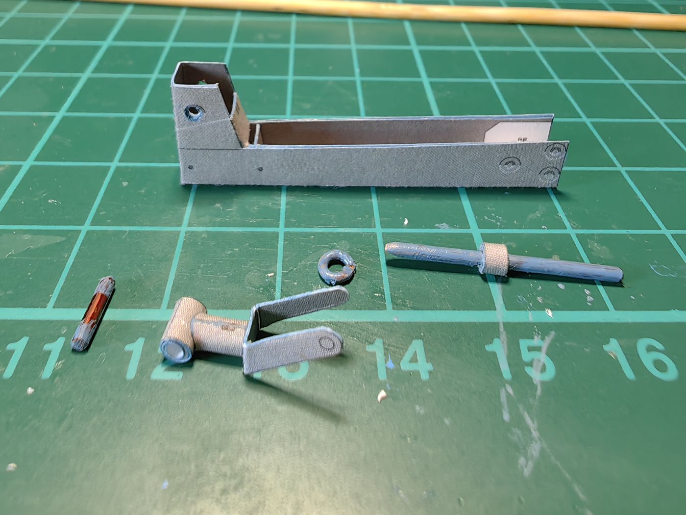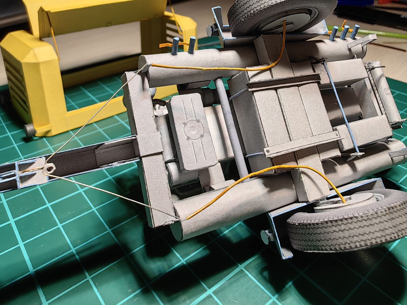 Taktiež pozor pri lepení celej oje na podvozok, aby ste nemali prehnutie v bode lepenia. Mrzí ma trošku, že mechanizmus ručnej brzdy nie je detailnejší, ale myslím, že šikovný modelár si vie mechanizmus vyrobiť  tak ako ja.