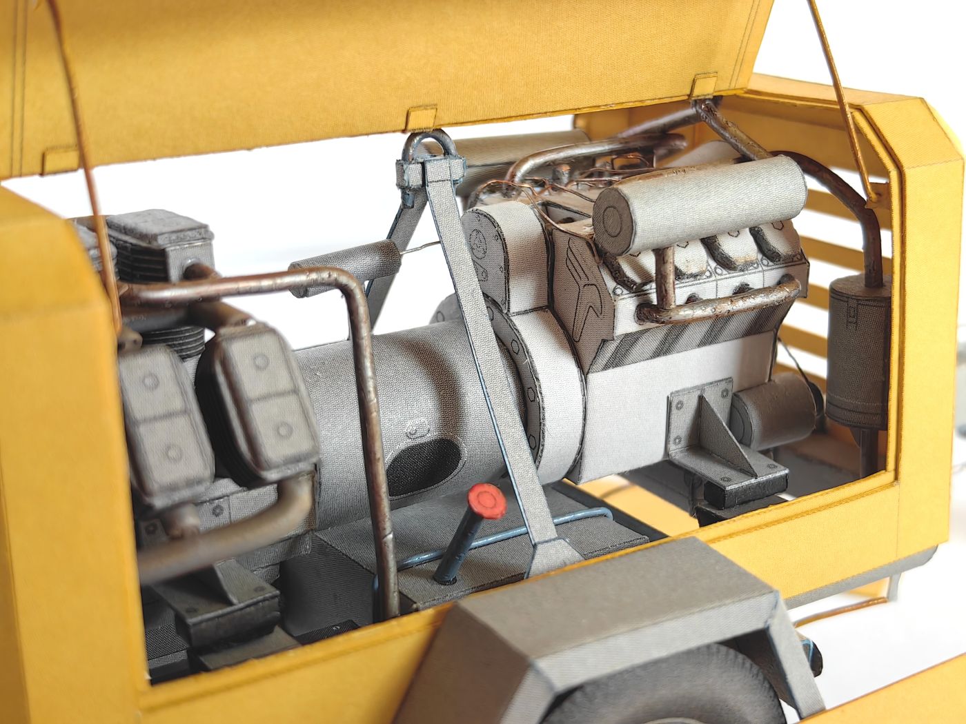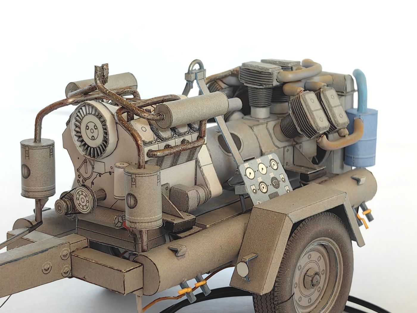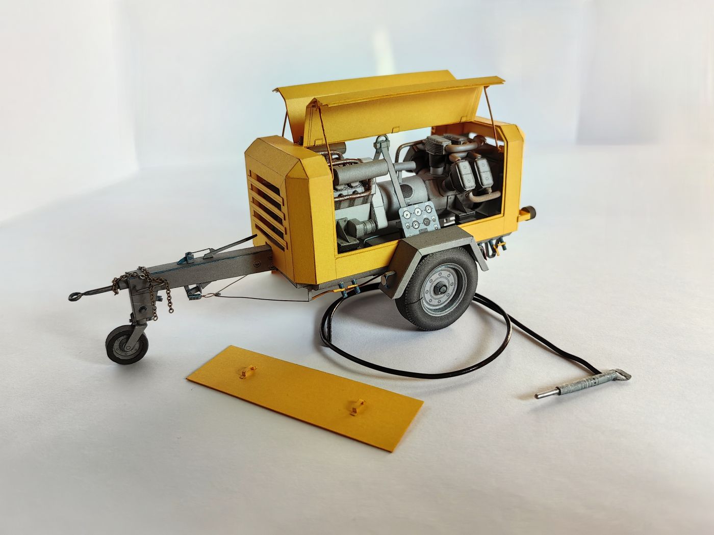 Model kompresoru je možné postaviť v jednoduchej alebo zložitej verzii. Model má na výber – pomocné koliesko jednoduché / zložité, kryt v 3 farebných prevedeniach, oj civilná / vojenská, pracovná / prepravná poloha, … atď. Mierka 1:32. Obtiažnosť uvedená vydaveteľstvom je 3/5.