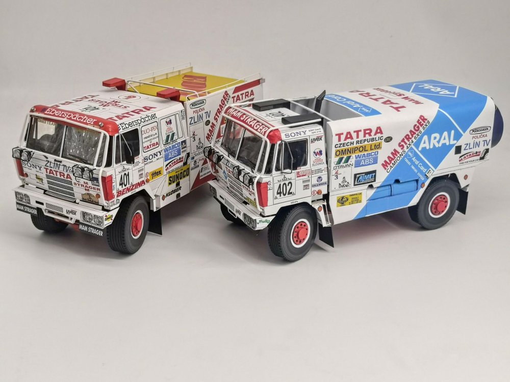 Legendární dakarská šestikolka Tatra 815 6×6 ožila ve verzi z Dakaru 1987 a můžete si ji sestavit včetně legendárních šlapadel. Slavný dakarský ročník 1994 si můžete připomenout díky výroční edici Tatry 815 HAS Karla Lopraise, nebo druhého vozu týmu Tatra 815 4×4, kterou řídil Zdeněk Kahánek.