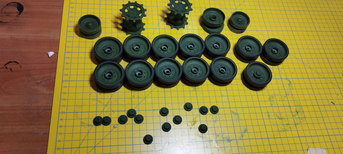 Stavba modelu probíhala, až na pár doplňků, v podstatě bez problémů. Nejdříve jsem sestavil kola, která jsou rozdělana na více částí, což potěší. Potom pásy a pak už jsem pokračoval korbou atd.