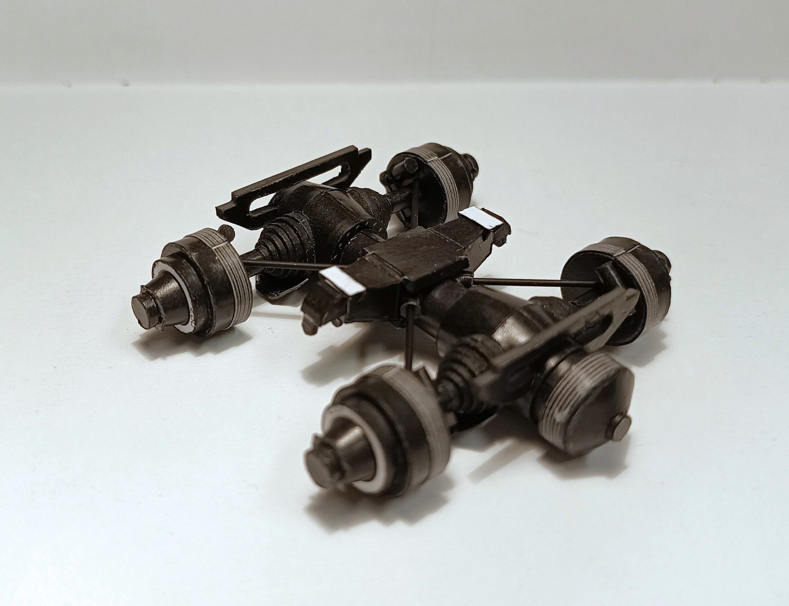 Až pri kompletácii podvozku som si uvedomil, ako bol tento dumper aj v skutočnosti krátky. Diely podvozku sú doplnené o laserom pálené kryty manžiet, ktoré nájdete v doplnkovej sade s dezénmi. Nenápadný detail, ale pekne to podvozok oživí.