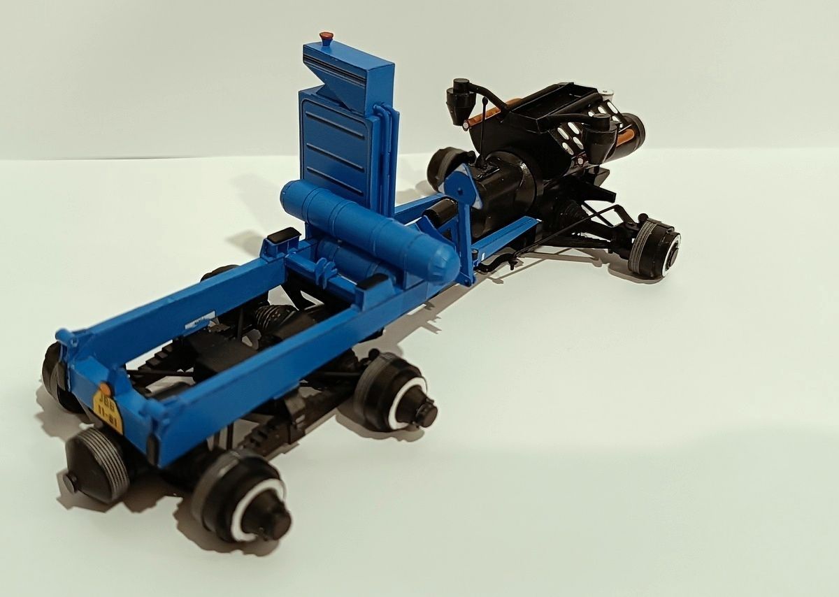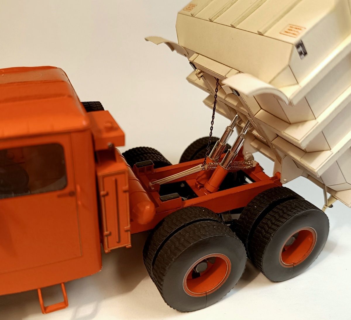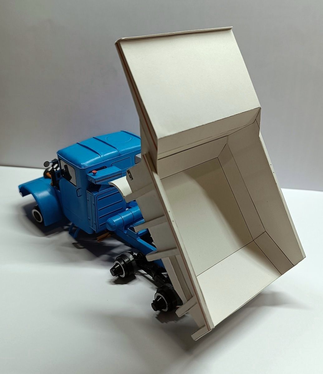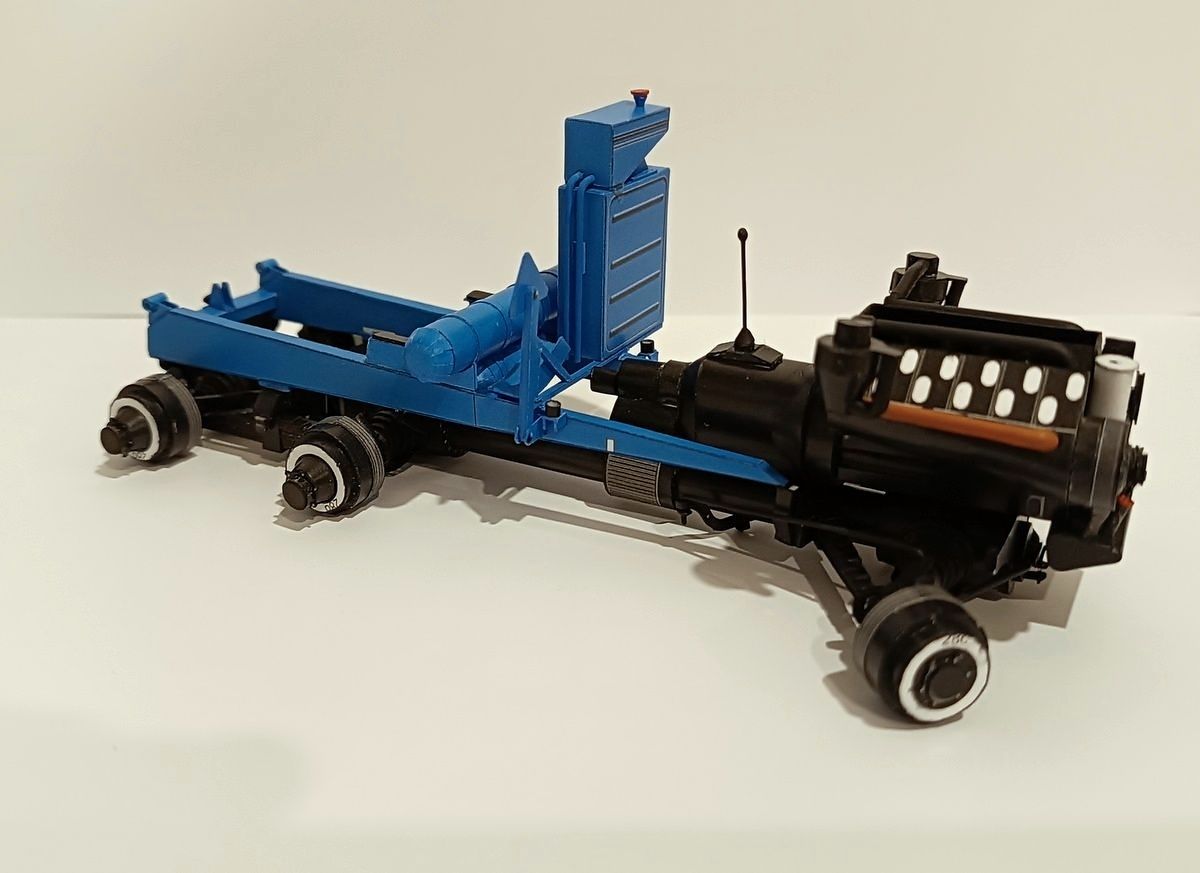 Ostávalo dorobiť korbu. Je to iba otvorená vana s niekoľkými rebrami a bez zadného čela. Sklápanie korby tvoria 2 piesty a mechanizmus, ktorý tvoria tiahla a spojovací reťaz.