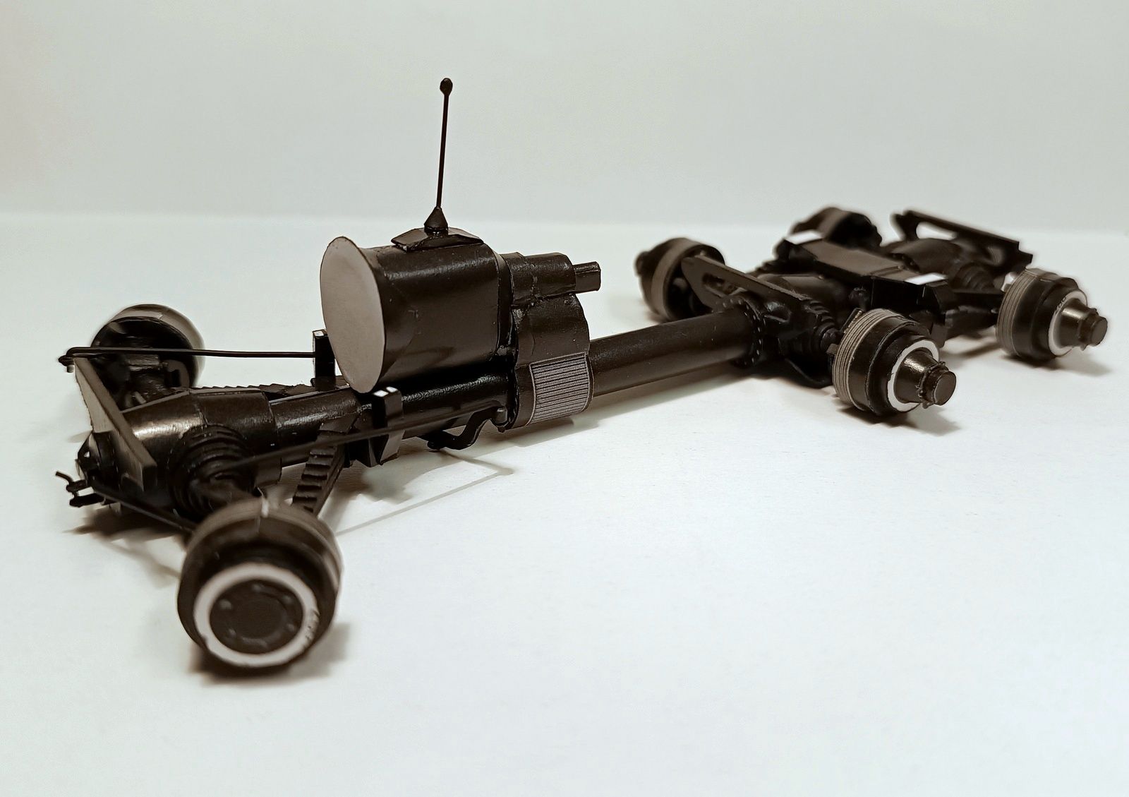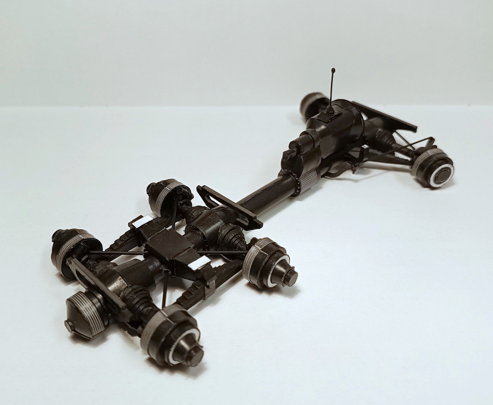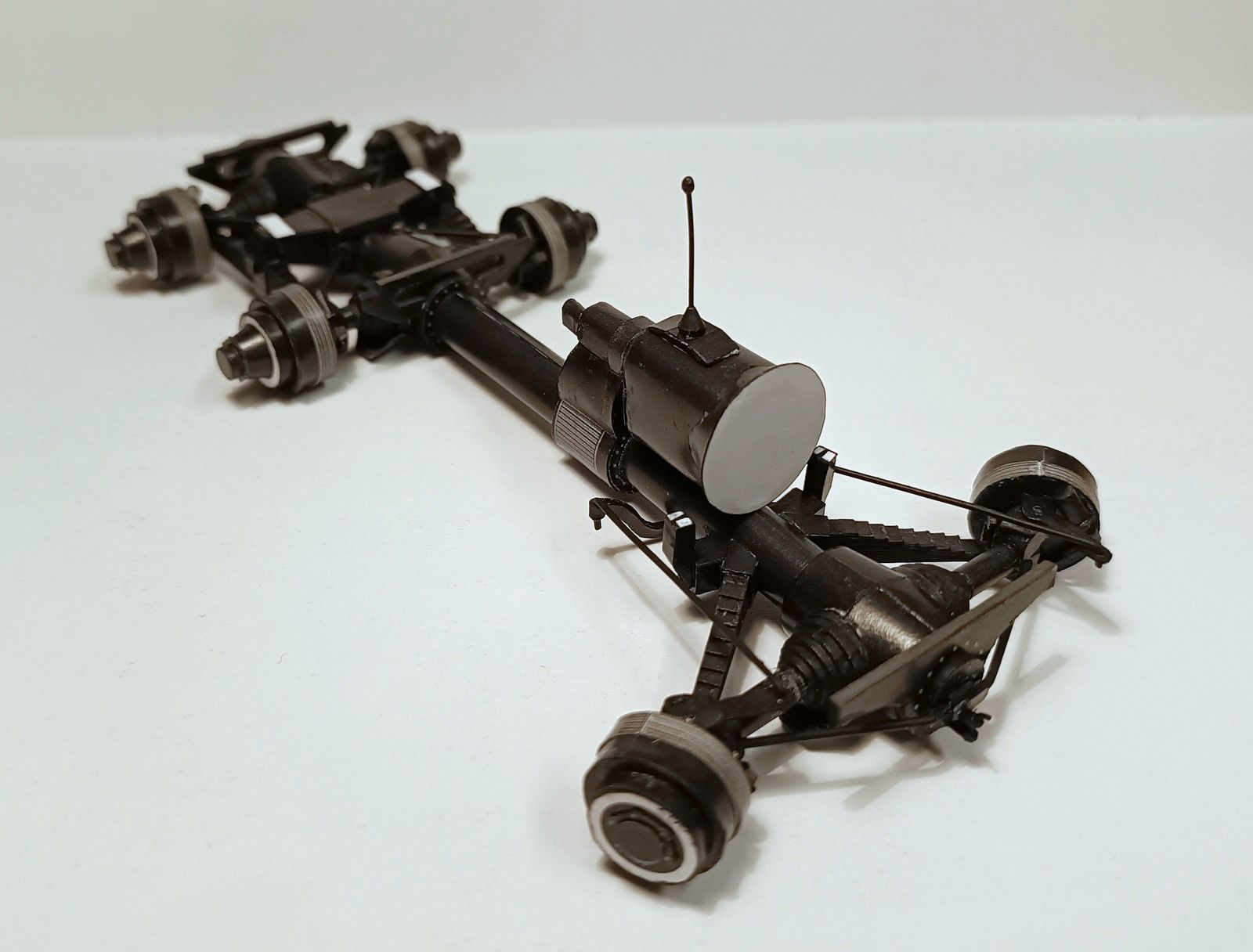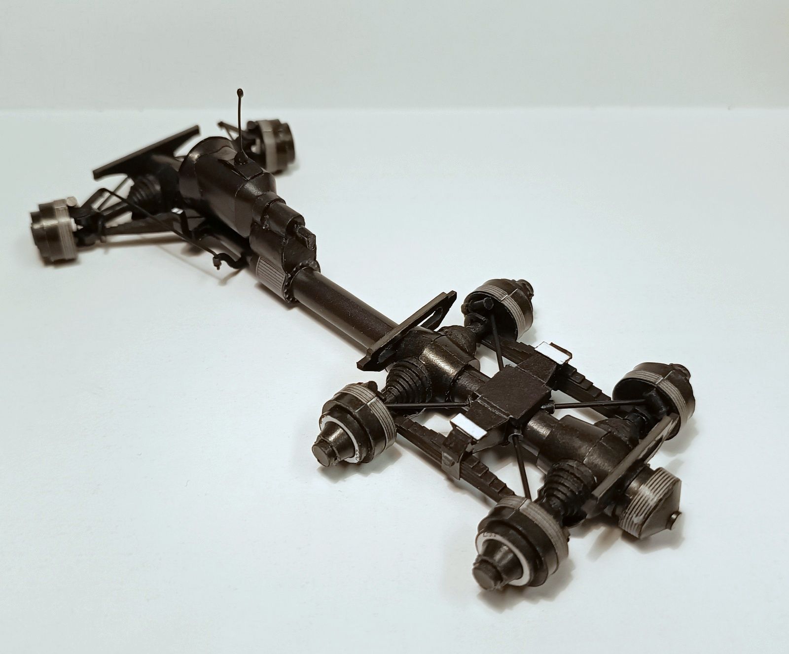 Ostávalo dorobiť korbu. Je to iba otvorená vana s niekoľkými rebrami a bez zadného čela. Sklápanie korby tvoria 2 piesty a mechanizmus, ktorý tvoria tiahla a spojovací reťaz.