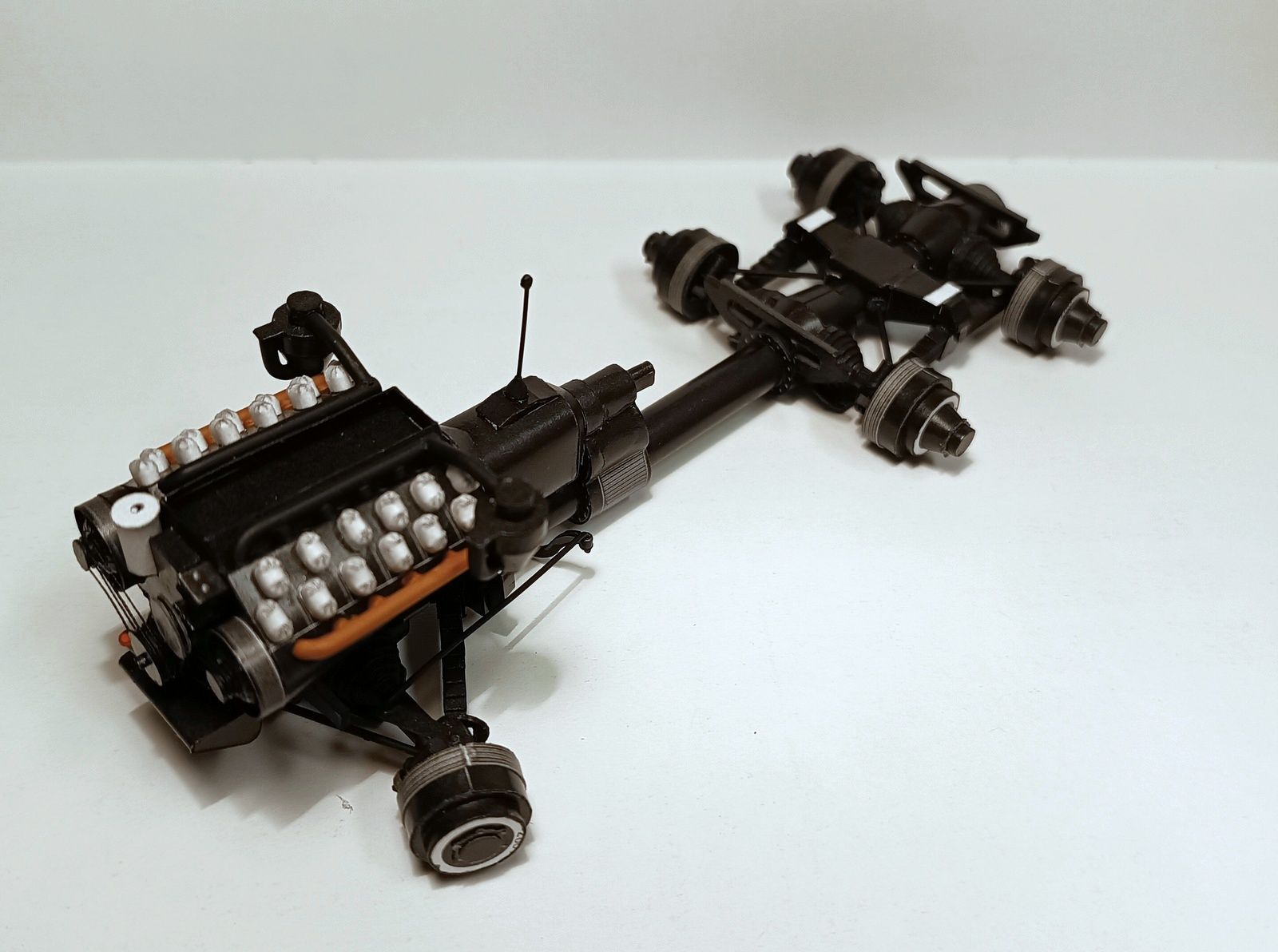 Stavba začína motorom. Jedná sa o 12 valec. Z tohoto motora vznikol motor pre V3S, keď sa z neho vzala polovica. Niekoľko dielov bolo teda podobných ako pri modeloch V3S.