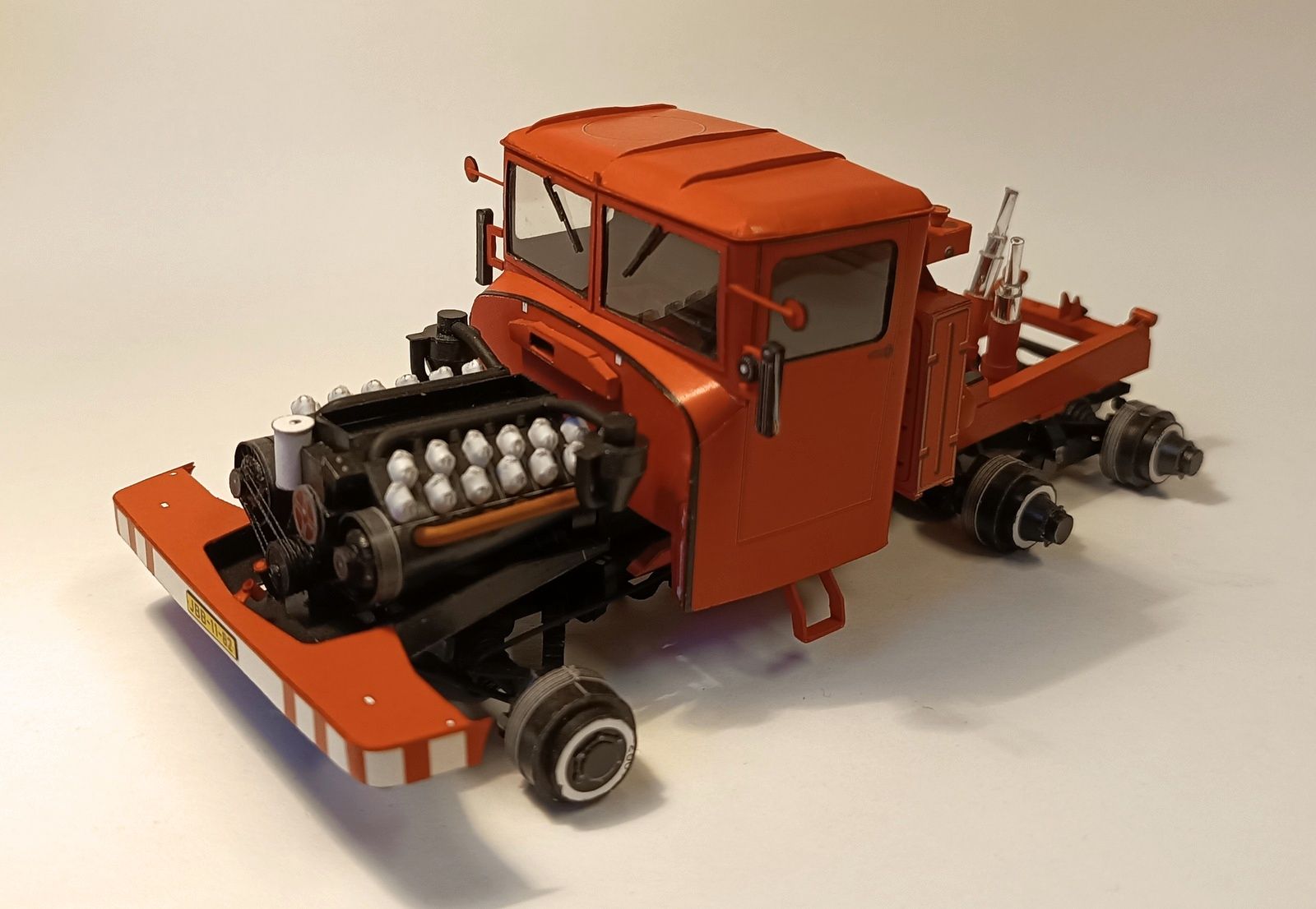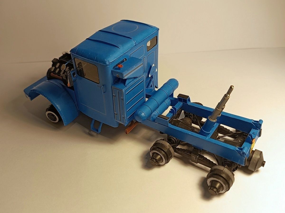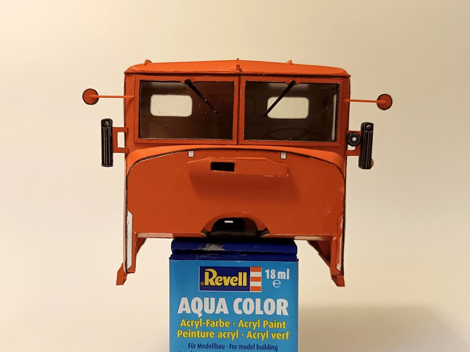 Ďalej stavba pokračovala kabínou. Interiér je pomerne jednoduchý v tej dobe tam toho ešte veľa nebolo. Rovnako tak zasklenie je jednoduché, keďže sklá sú rovné. Konštrukcia kabíny je napríklad v porovnaní s kabínou V3S jednoduchá. Trochu trpezlivosti a výsledok stojí za to.