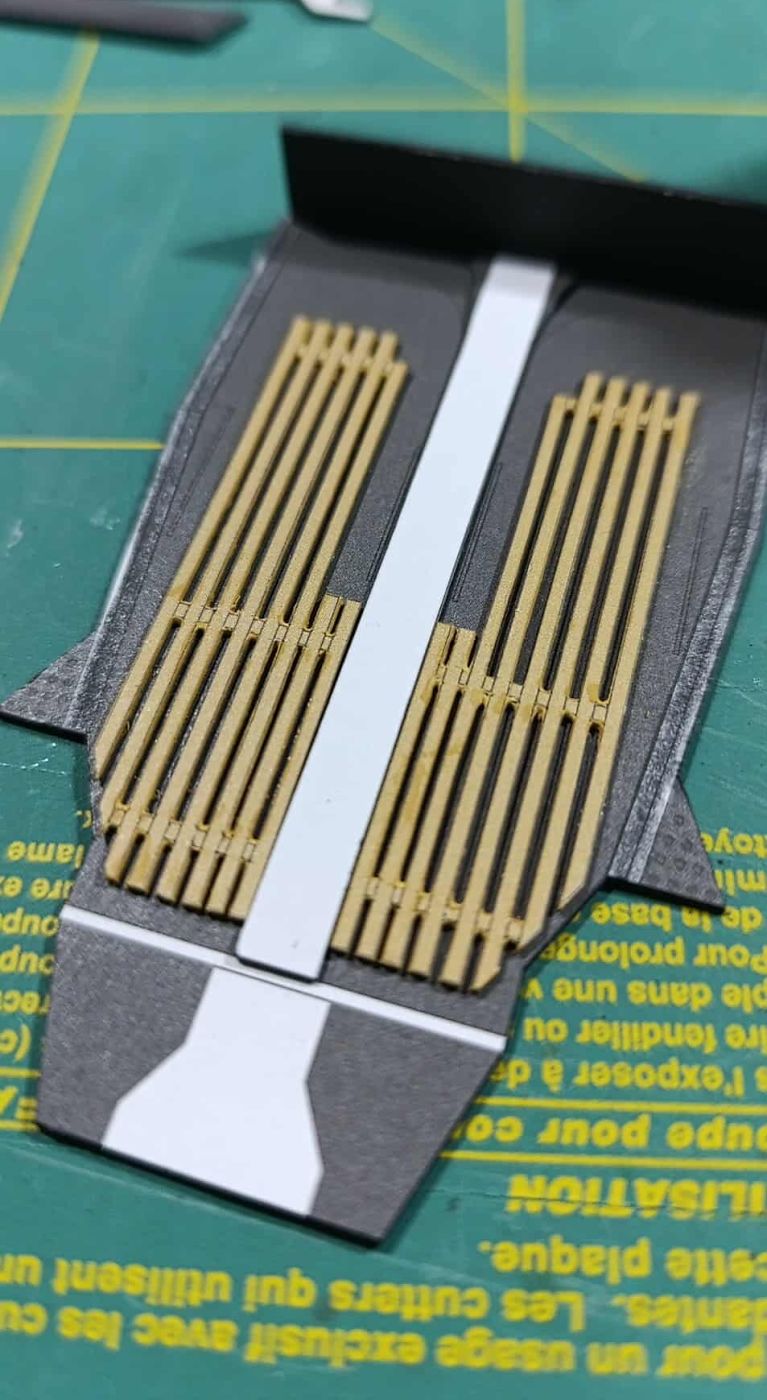 Keďže som nemal k modelu originálne laserové diely, tak prišlo k vyrezávaniu samotných dezénov. To mi zabralo dokopy dva večery. Našťastie samotný dezén nebol vôbec komplikovaný.