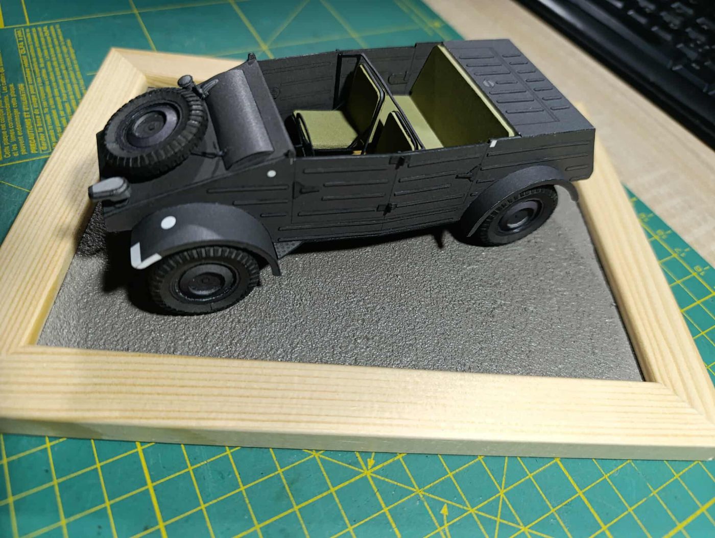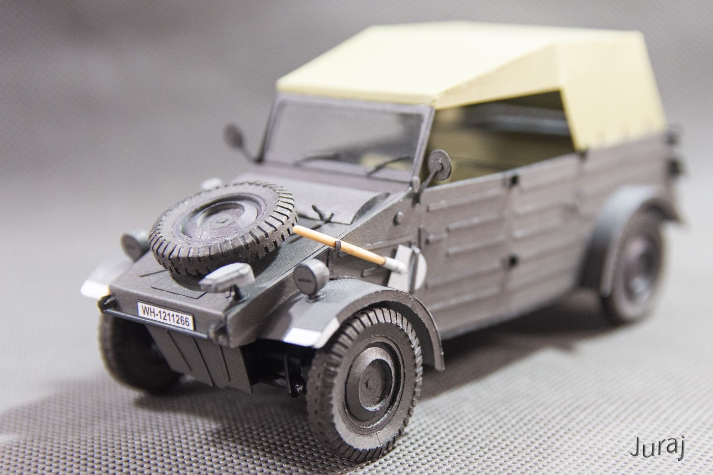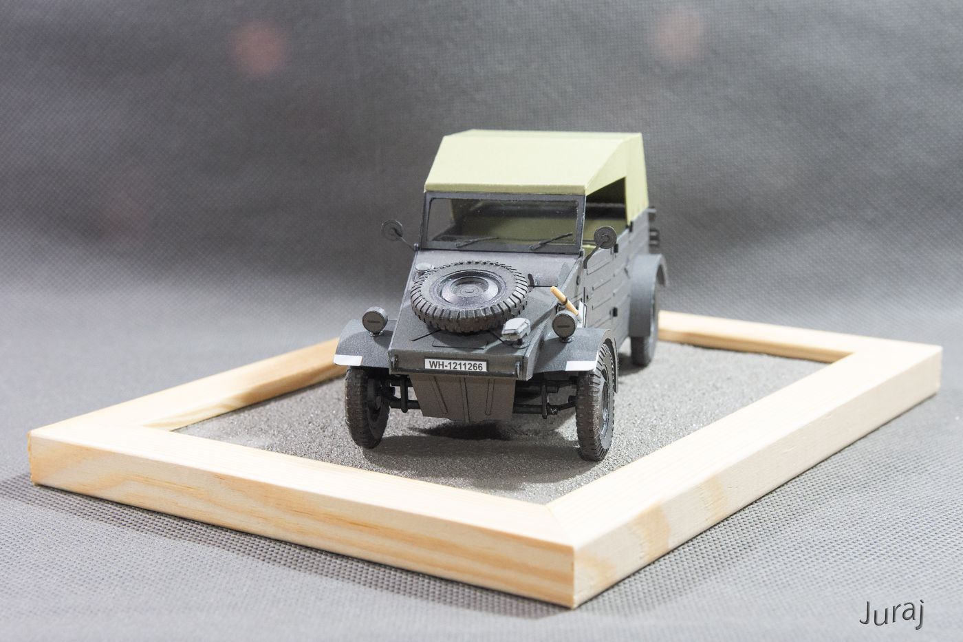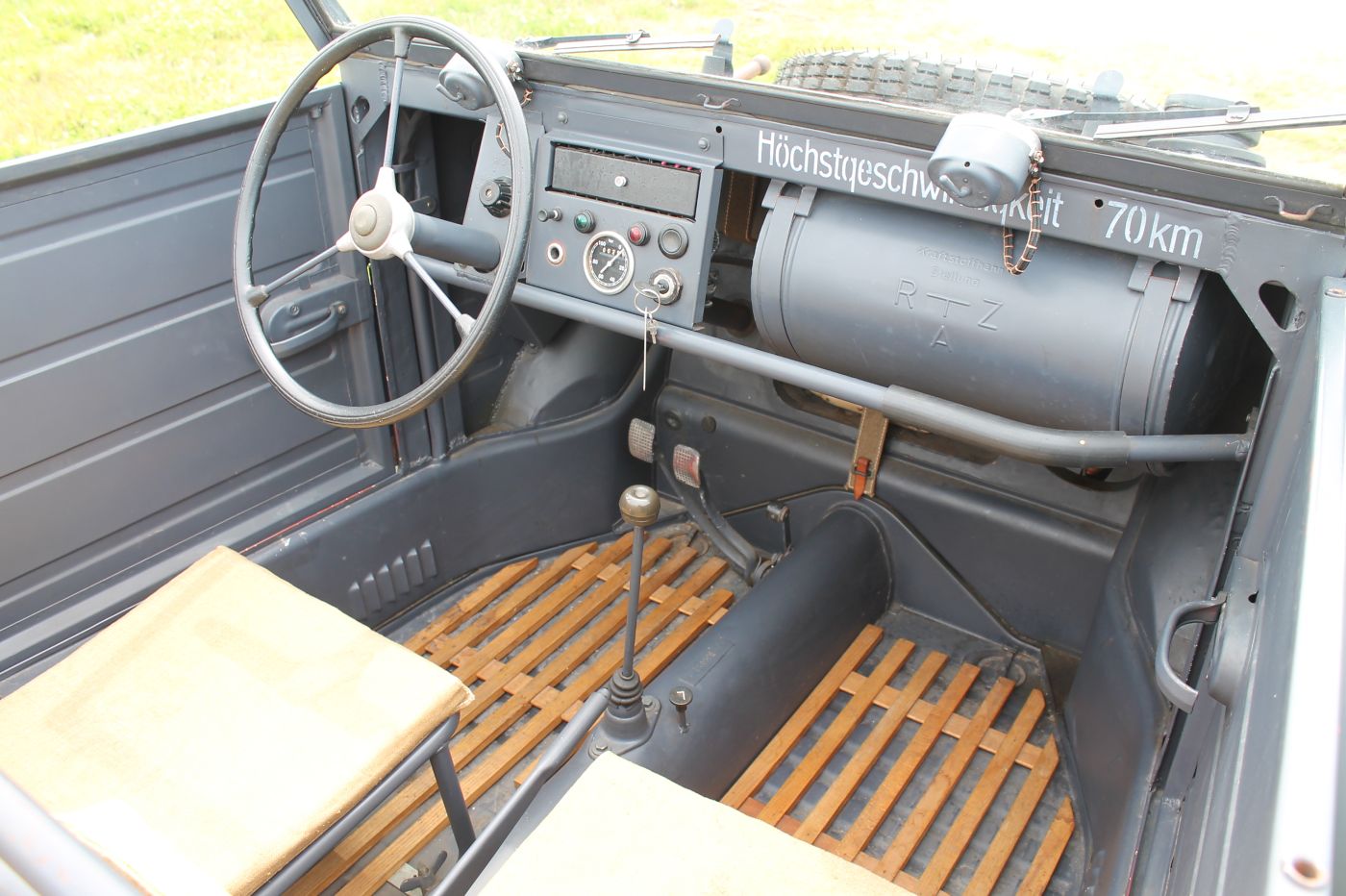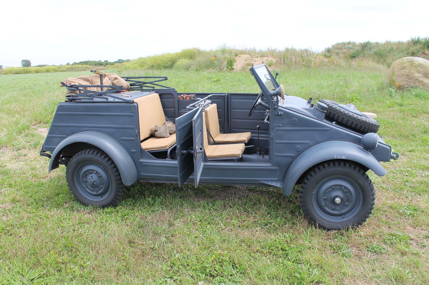Konštruktérom vozidla bol Ferdinand Porsche z Vratislavíc nad Nisou. Prvé prototypy KdF 82 vznikli v roku 1938 a mali jednoduchú otvorenú karosériu bez dverí. V roku 1939 bol automobil upravený – dostal vyšší podvozok, štvordverovú karosériu s plátennou strechou a redukčné prevody, ktoré zlepšili jazdu v teréne, hoci znížili rýchlosť.